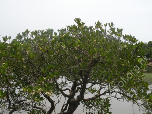 例如這種海漆樹,別名竹沉香,是本地八種真紅樹品種之一。 | 另一真紅樹品種秋茄樹,樹身長得高高的顯示潟湖鹽份較少。 |