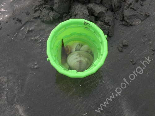 看斗大的貝殼,可見貝澳的海產何其豐富。 | 三人行必有收穫,看一人一袋海產,開大餐啦! |