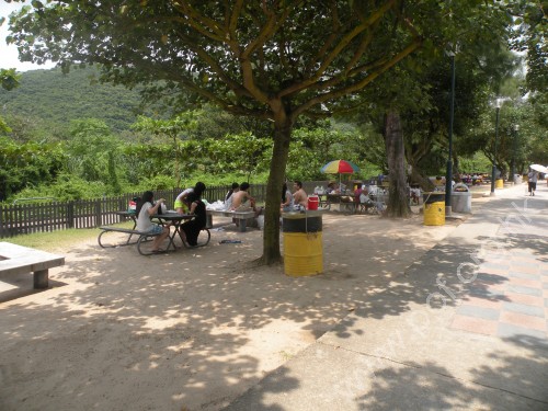 若嫌燒烤麻煩,泳灘設有快餐亭供應飲品小食,簡簡單單又過半天。 | 泳灘設有涼亭及坐椅供人乘涼,在大自然林蔭下清風送爽多寫意。 |