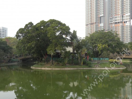 公園設有多個休憩場地,市廣場商場一入公園就有這個大型的涼亭設施。 | 公園內種滿樹木花草,園林景色非常雅緻,配合人工湖景,相得益彰。 |
