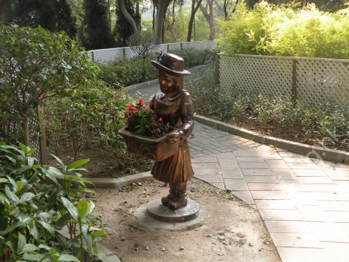 公園一角的碧水亭,仿日式亭園設計配以荷塘綠柳,另一番品味。 | 園內另一角有一個細小的玫瑰園,玫瑰花未盛放,賣花女獨憔悴。 |