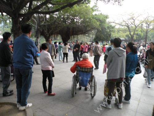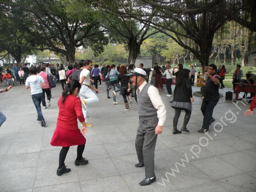 公園的露天劇場供人表演,免費入場,今場是粵曲獻唱。 | 公園設有三個自娛區供人表演,觀眾免費,跳舞都得。 |