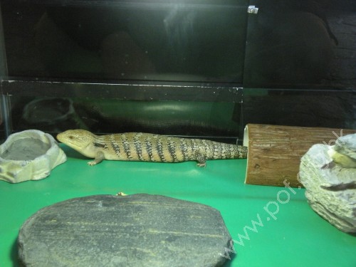 黑白泰加巨蜥,這條巨蜥體形算細,產自南美洲森林山區,是瀕危物種。 | 藍舌石龍子,產自新畿內亞、澳洲北部及東部,似一條蟲形的小豬。 |