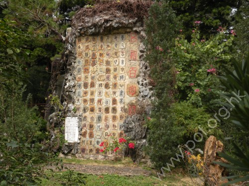 仙館內大部分是園林,四處廣植林木花卉,佈局有假山水池、庭園石碑。 | 園林區內道德廣場的道德經碑,刻有老子道德經全文,是道教的基本教義。 |