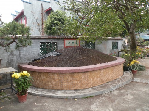 荷花塘一角的竹亭虛心亭,虛懷若谷是老子的主張,當然有助清修。 | 虛心亭旁的長生池,養有小龜數隻,關在牢籠中給你長生不會是件樂事。 |