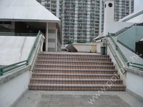 連接商場地面行人路,通道是寬闊的梯級,往來商場2樓及3樓天台層,位於商場兩邊部份中間位置,無設升降設施,無觸覺引路徑.