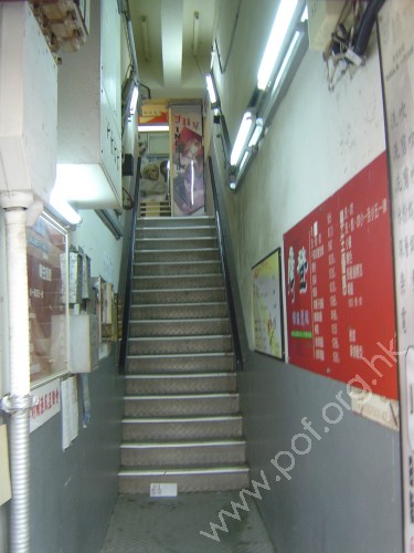 連接汽車路旁行人路,通道是夠闊的住宅出入口,往來住宅,前臨一級台階障礙,連接梯級走廊,無斜道輔助,無觸覺引路徑.