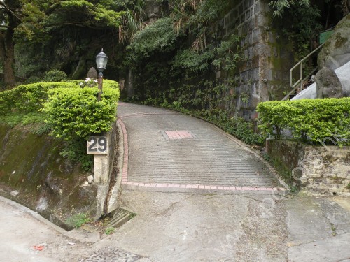 連接盧吉道柏油行人路面,通道是寬闊無障礙的汽車通道,可作行人通道,往來屋苑,通道是一段彎曲的斜路,無觸覺引路徑.