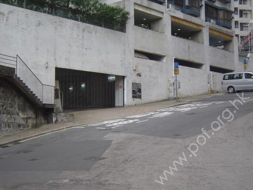 連接汽車斜路與旁行人斜路,通道是寬闊無障礙的屋苑汽車出入口,前設下斜路緣連接汽車斜路,兩旁無觸覺引路徑.