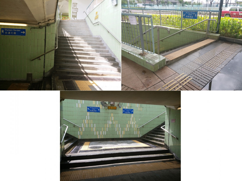 位置 : 分別位於世運花園、馬頭涌道的隧道入口通道上,每邊各有兩條梯級。