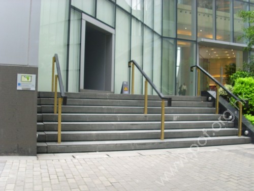 斜道寬闊,斜度微,兩旁有扶手,底頂有平面,但只有頂部有金屬觸覺警告帶。