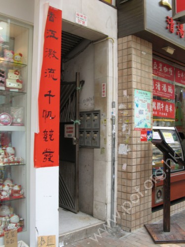 通道足1.05米,門前有一級梯級,門口設有一扇不銹鋼閘,裡面是梯級通道,無觸覺引路帶。