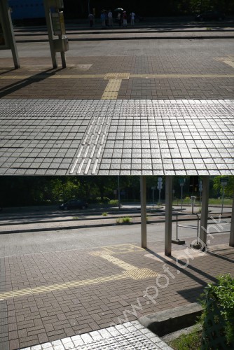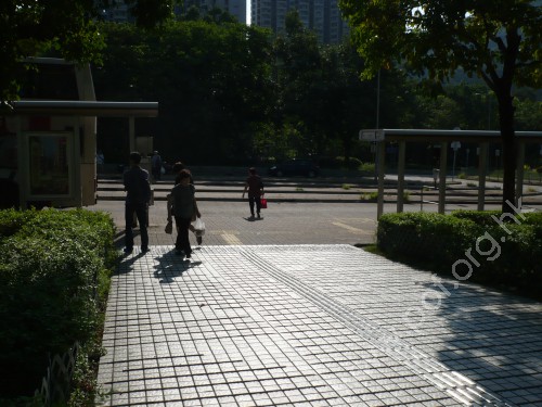 連接汽車路,通道是寬闊平坦無障礙的車站車輛出口,連接車站內小巴站,計程車站及巴士站,旁的行人路無觸覺引路徑.