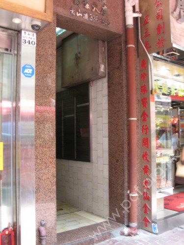 通道足1.05米,門前有一級梯級,門口設有兩扇鐵閘,閘內還有一段5級梯級,梯級兩旁設有扶手,無觸覺引路帶。