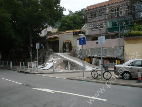 連接汽車路旁行人路,通道是寬闊平坦無障礙的停車場汽車出口,連接露天停車場,兩旁行人路無觸覺引路徑.