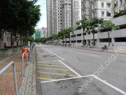 通道寬闊,設有多個停車位,無傷殘人士停車位,兩旁的行人路,無觸覺引路設施。