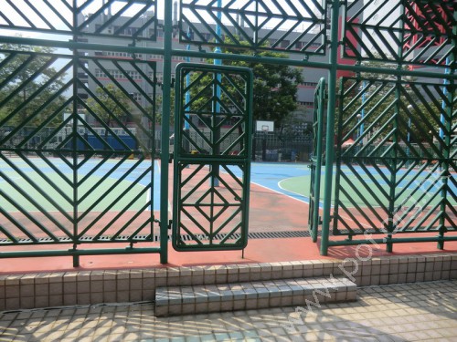 通道寬闊,有一級門檻,豎板高度適中,入口有一道對開的金屬閘門,外塗綠色油漆,無觸覺引路設施。