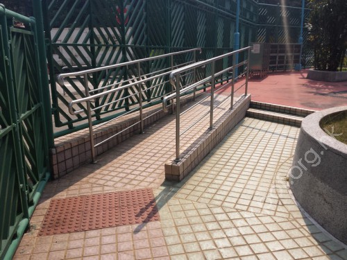 斜道闊0.9米,斜度1:12,兩邊是金屬欄杆,及兩邊均設有扶手,頂底部有觸覺警告帶。