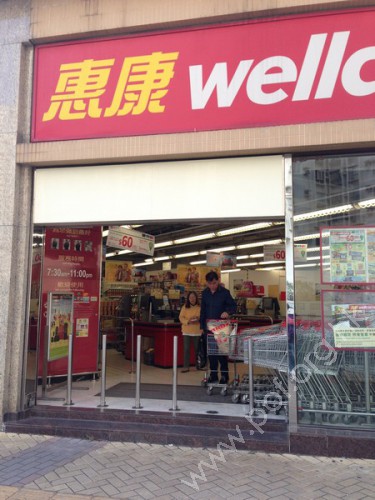 通道入口是開放式無門設計,有二級踏板,有多條金屬柱阻礙,一邊擺放購物車,令通道狹窄,無觸覺引路帶。