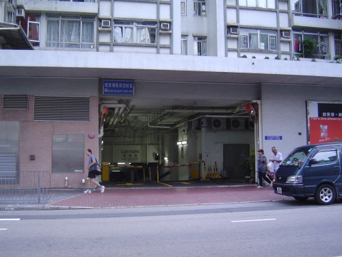 連接汽車路及旁行人路,通道是寬闊平坦無障礙的汽車出入口,前臨下斜路緣,兩旁行人路無觸覺引路徑.