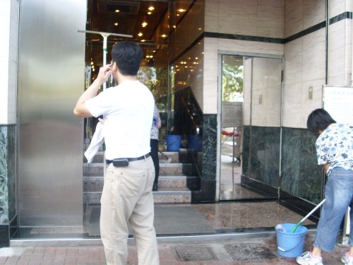 通道寬闊,離地先是一級梯級,往內又有四級梯級,一邊有扶手,無觸覺警告帶。
