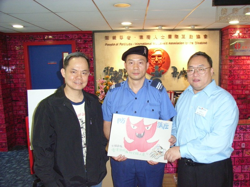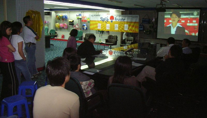 施先生 : 這是一個很有意思的寄趣味於防火的遊戲,香港是沒有的。不過,我們有一個防火安全「大使」的制度,提供予有心人參與,只要你們集合30-40人,往黃大仙消防局報名,消防署會為你們安排訓練,上課一天,認識防火設備,並參與親身體驗火場工作,比起電腦模擬更有真實感,而且更是免費的 (眾笑)。當然,有權利亦有義務,「大使」們需要協助推廣消防知識,宣傳防火運動,中秋時派安全燈籠...。