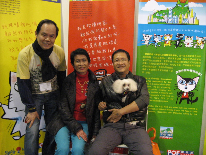 最後,不得不提起的是我們的「貓城與堅毅貓」,亦是精英盡出。由於攤位毗鄰大會所安排的貓屋(貓貓遊戲室)採用了我們的貓城圖像作為裝飾,所以,我們的攤位雖然只有三米乘三米,但是與毗鄰的貓屋相連一起看下去,卻有二十米闊,儼如一個大攤位。很多來賓都會特別走到貓城圖像下與視障貓阿智、杖子貓阿樂...旁邊影相,作為留念。所以,在這個大會會場中,我們亦是一個耀目的攤位哩!