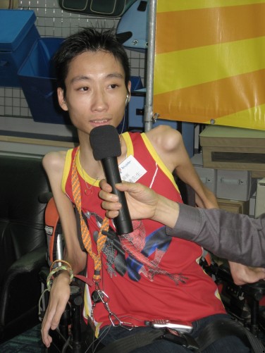 此次雅敘還邀請來一位特別嘉賓,他就是曾經在甘迺迪中心就讀的黃婉冰校長的學生、現在香港教育學院修讀「視覺藝術」課程的李曉曦同學,他是一位肌肉萎縮患者(簡稱MD),生命的時日對他來說已經很有限,但他依然堅強而樂觀的面對每一天,珍惜每一天,讓每一天都過得更有意義,讓每一天都能發出光和熱。我們眼前的李曉曦雖然四肢肌肉已經萎縮到可以用“骨瘦如柴”四個字來形容,但他卻是一個人坐輪椅來的。他始終面帶微笑,說話的聲音宏亮而充滿活力。