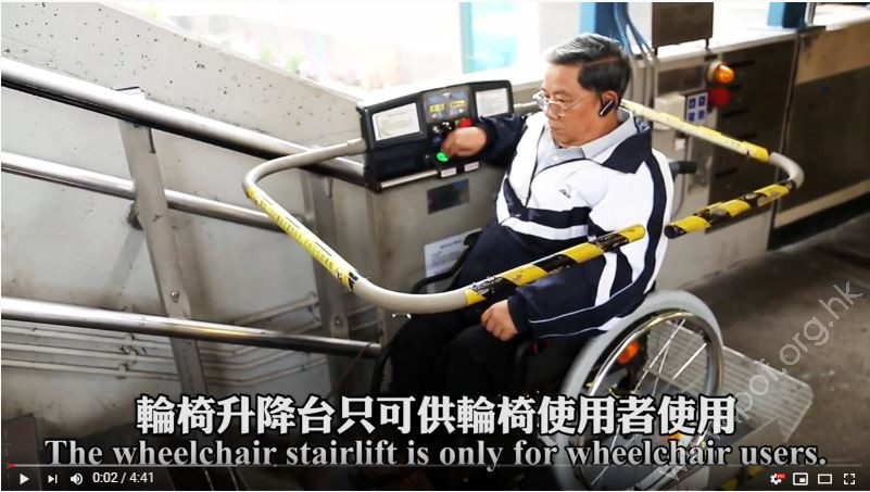 以下是2015年由本會與機電工程署合作、由本會已故無障礙大使蕭東才先生擔任模特,拍攝製作的【輪椅升降台教學錄影】,對正確使用輪椅升降台作出正確示範和說明,讓不熟悉輪椅升降台使用方法的人士,能夠學習和掌握正確使用方法,避免因操作不當而損壞升降台,影響自己和他人。