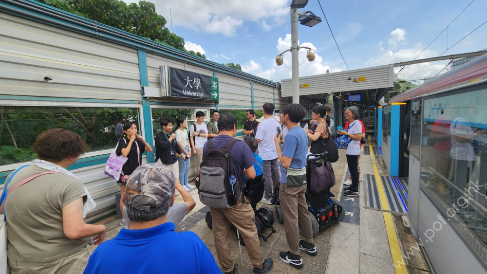 2025年7月17日上午10時半,港鐵經社聯組織復康機構前往港鐵大學站月台視察東鐵綫新加裝的自動月台閘門,出席會議的有社聯代表、港鐵代表、及多間慈善團體的代表近三十人,包括視障、聽障和肢體傷殘人士服務機構代表,本會行政幹事鄭怡泠女士及無障礙大使曾啟先生出席視察活動。