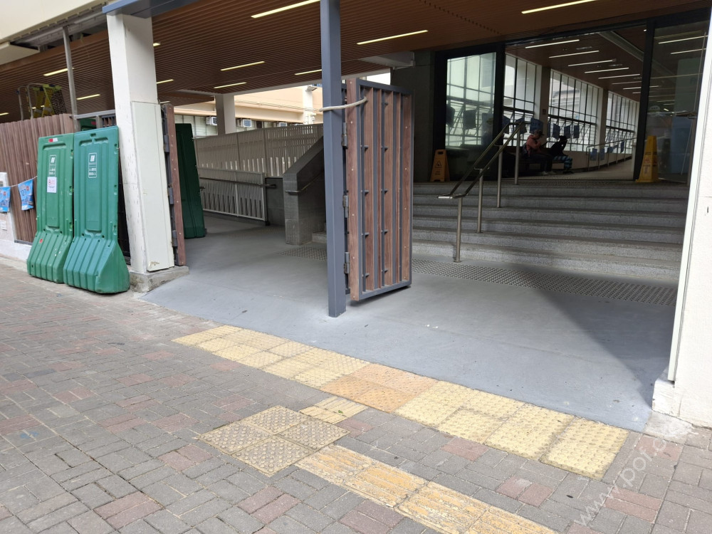 王素琴女士則提出改善建議:首先請路政署將斜道外連接的行人路路面升高,因該處目前明顯低窪,比行人路近馬路的一段路面低約2-3CM;然後,再將斜道往中心內延伸一小段,如此便能大大減低斜道的斜度至不高過1:12,令輪椅使用者安全出入中心。在場各方未有反對意見。 不過改善工程需要一些時間,尤其是牽涉到路政署、建築署兩個部門,大家需要作出協調。應該是路政署先升高路面,建築署再接著剩餘的工程。