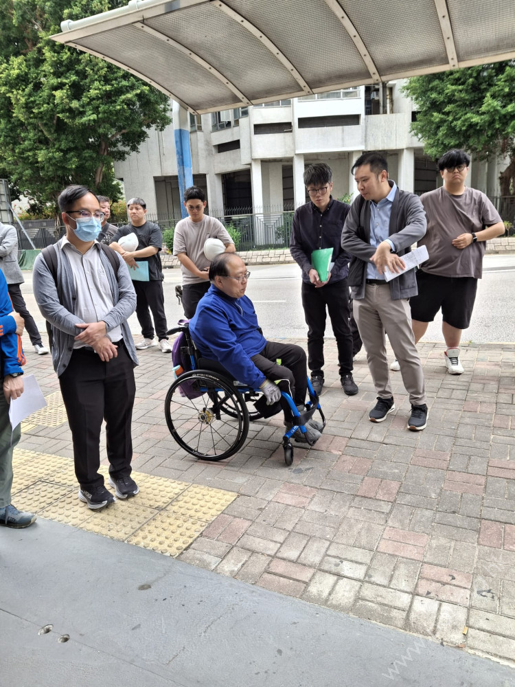 本會總幹事王姑娘當日立即向醫管局無障礙設施統籌經理查詢,得知該中心的設施和維修屬於衛生署負責,而具體實施工程的則是建築署。本會立即聯絡建築署負責該宗工程的經理,向他反映問題及要求盡快作出改善。 2025年12月2日下午3時,建築署邀請王姑娘、林耀國夫婦、路政署、衛生署、中心代表、工程承建商,於中心正門外現場察看斜道實況,林氏夫婦分別演示一次使用斜道進入中心的操作,發現電動輪椅根本後轆打滑、無法爬上斜道;而林生自行驅動手推輪椅勉強上到斜道,但落斜時有反輪椅的危險。在場各方代表眼見為實,認同斜道過斜的事實。