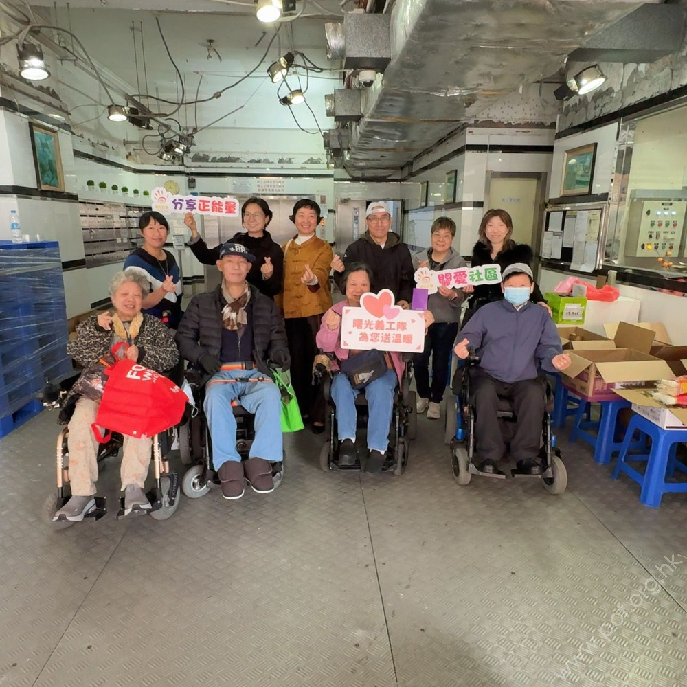 早上一開工,機構職員便開始行動,將物資搬運至樓下大堂,開包裝、排列好,在義工幫助下,提前於9:45開始向等候的會員派發福袋。除在現場幫忙派發的三名義工外,還有另外多名義工負責將物資送到居住全港不同地區而又無法來到機構領取的會員家中。派發過程十分順利,義工和職員配合默契,會員們領取福袋後,個個笑逐顏開,連聲道謝。義工和會員互道新春祝福,並拍照留念。現場氣氛溫馨祥和。