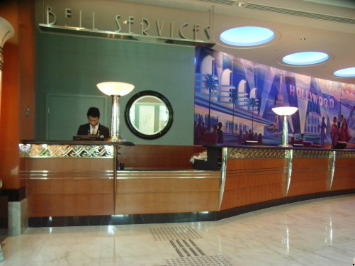 迪士尼好萊塢酒店位處翠綠海旁,坐擁優美園林景致,樓高8層,擁有600間客房,無障礙房間亦有12間,更有相連房間的設計,以方便照顧有需要人士,大樓更以U字形排開,酒店的設計揉合了傳統裝飾派的硬朗線條及親切獨特的迪士尼創作,配合充滿電影感的燈光效果,營造出荷里活輝煌華麗璀燦的氣氛。