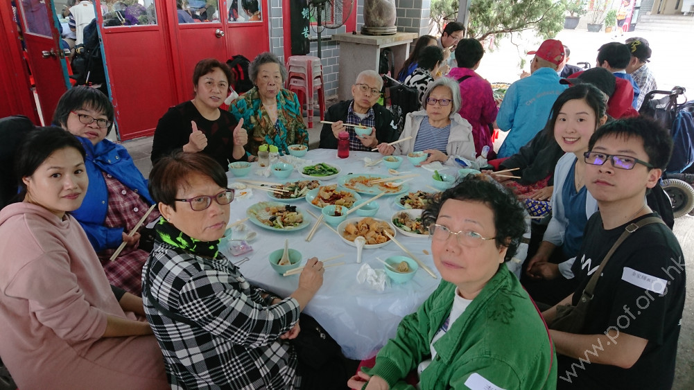 本次活動共有19名義工出席,其中18名是老義工,一名新義工。大家對活動流程和執行工作任務都是駕輕就熟,在本會總幹事稍加分工和講解之後,大家分頭執行工作任務。此次租用4部復康巴士接載會員,午膳則分成6席用餐;每部車有一位組長帶領4名義工負責接送會員上落車;每圍台有一名席長與3名義工負責照顧該席的會員用膳:裝飯、夾餸,細心周到。