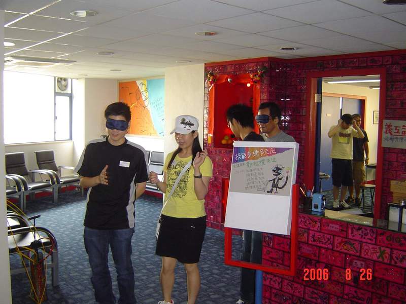 課程先由團隊建立遊戲開始,玩的是「砌高塔」遊戲,參加學員分成兩組,分別以報紙砌出一座高塔,要在沒有支撐或輔助物件支持下仍能圪立不倒。大家受了約廿分鐘,成功地各砌了一座高塔,之後大家分享體會,就是團體合作,首重溝通,其次就是有計劃地進行,先要有一個意念,再經過討論及修正,便能逐步完成。